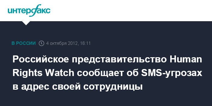 Российское представительство Human Rights Watch сообщает об SMS-угрозах в адрес своей сотрудницы