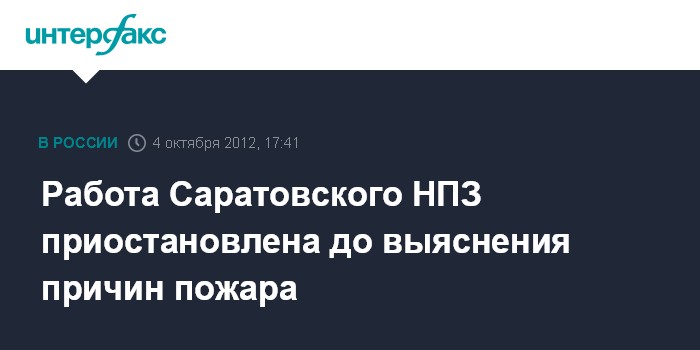 Саратов. 4 октября. INTERFAX.RU - Саратовский нефтеперерабатывающий завод временно приостановил свою работу в связи с произошедшим в четверг пожаром, сообщил первый заместитель министра промышленности и энергетики региона Максим Шахалов.