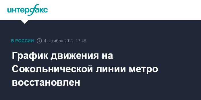 Москва. 4 октября. INTERFAX.RU - Восстановлено движение поездов на Сокольнической линии столичного метро, где в четверг пассажир упал под поезд на станции "Сокольники".