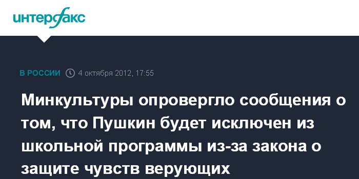 Минкультуры опровергло сообщения о том, что Пушкин будет исключен из школьной программы из-за закона о защите чувств верующих