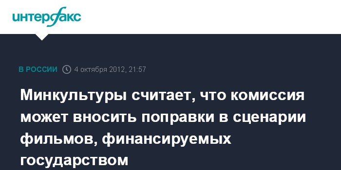 Минкультуры считает, что комиссия может вносить поправки в сценарии фильмов, финансируемых государством