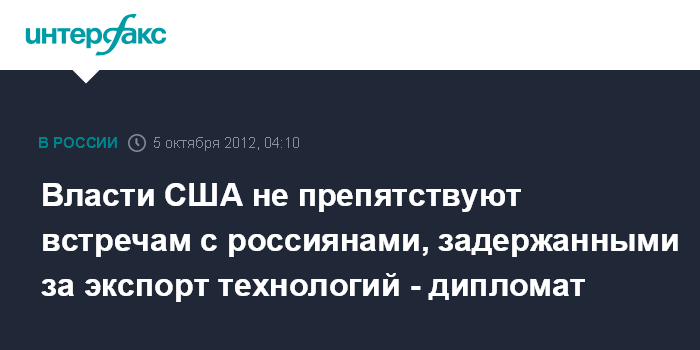 Власти США не препятствуют встречам с россиянами, задержанными за экспорт технологий - дипломат