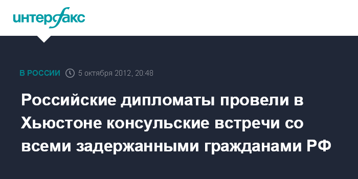 Москва/Хьюстон. 5 октября. INTERFAX.RU - Консульская встреча с задержанными в Хьюстоне гражданами России - Анастасией Дятловой, Викторией Клебановой и Александром Фищенко состоялась после того, как им были зачитаны обвинения, сообщил в пятницу по телефону пресс-секретарь генконсульства РФ в Хьюстоне Максим Полетаев.
