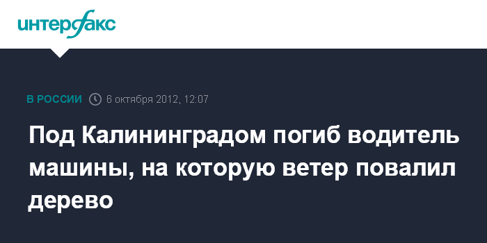 Калининград. 6 октября. INTERFAX.RU - Под Калининградом упавшее дерево убило водителя автомашины.