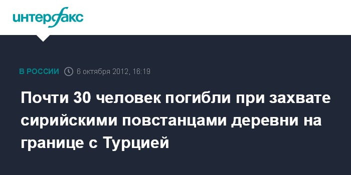 Почти 30 человек погибли при захвате сирийскими повстанцами деревни на границе с Турцией