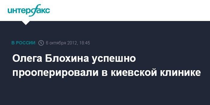 Киев. 6 октября. INTERFAX.RU - Главный тренер киевского "Динамо" Олег Блохин успешно прооперирован в киевской клинике "Борис" после обнаружения у него тромбоза левой сонной артерии, рассказал в субботу пресс-службе клуба президент клиники Михаил Радуцкий. В отсутствие О.Блохина командой будет руководить его ассистент Алексей Михайличенко.