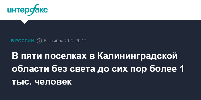 Как сообщил "Интерфаксу" руководитель пресс-службы регионального МЧС Алексей Баранов, к настоящему моменту восстановлено энергоснабжение Калининграда и большинства муниципальных районов. Без света остаются около 1 тыс. человек, проживающие в пяти поселках. Ожидается, что энергоснабжение в них будет полностью восстановлено к 21.00.