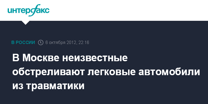 Москва. 6 октября. ИНТЕРФАКС - В районе Сетуньского проезда на западе Москвы неизвестные обстреливают проезжающие автомобили из травматического оружия.