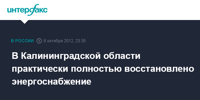 Калининград. 6 октября. ИНТЕРФАКС-СЕВЕРО-ЗАПАД - Ремонтные бригады "Янтарьэнерго" и муниципальные образования Калининградской области практически полностью восстановили энергоснабжение в регионе, которое было нарушено штормом.