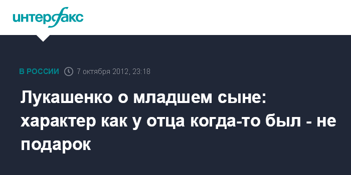 "Он (Николай - ИФ) растет хорошим человеком, не знаю, как дальше будет. Характер как у отца когда-то был - не подарок. Но думаю, вырастет хорошим человеком", - заключил президент Белоруссии.