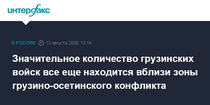 "По состоянию на 9:00 мск 13 августа на югоосетинском направлении вооруженные силы Грузии начали отвод своих войск в направлении Тбилиси. Тем не менее, вызывает озабоченность большая концентрация грузинских войск вблизи зоны безопасности", - заявил заместитель начальника Генштаба ВС РФ Анатолий Ноговицын на брифинге в Москве.