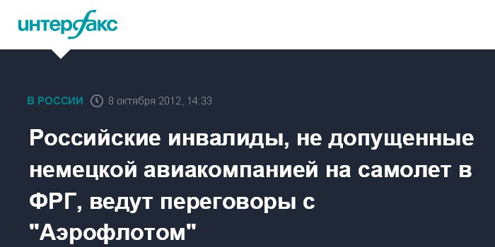 Российские инвалиды, не допущенные немецкой авиакомпанией на самолет в ФРГ, ведут переговоры с "Аэрофлотом"