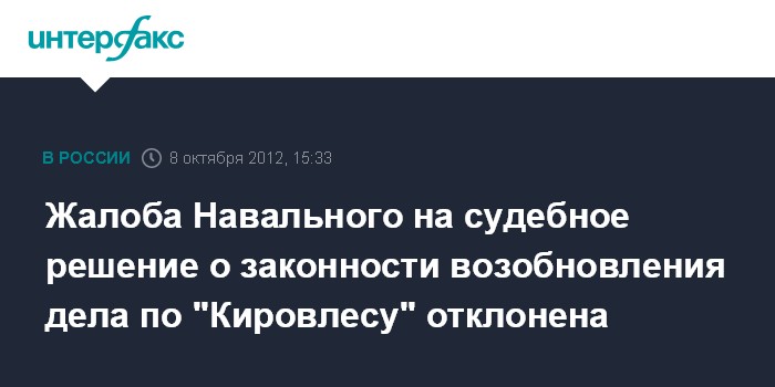 Жалоба Навального на судебное решение о законности возобновления дела по "Кировлесу" отклонена