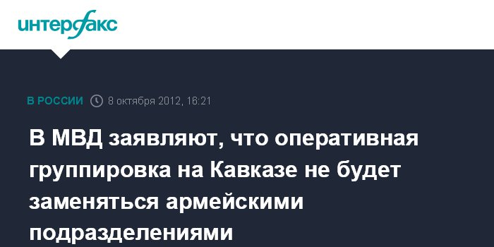 В МВД заявляют, что оперативная группировка на Кавказе не будет заменяться армейскими подразделениями