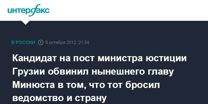 Тбилиси. 8 октября. INTERFAX.RU - Кандидат на пост министра юстиции Грузии Тея Цулукиани заявляет, что действующий глава ведомства Зураб Адеишвили покинул территорию страны.