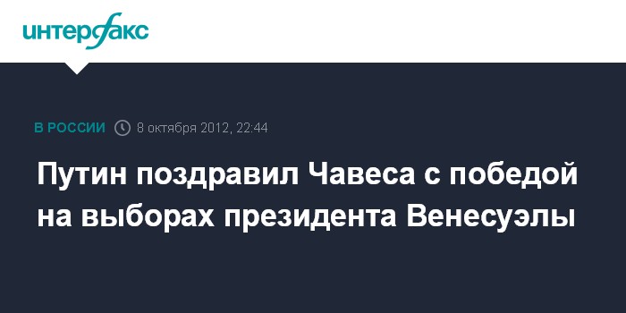 Путин поздравил Чавеса с победой на выборах президента Венесуэлы
