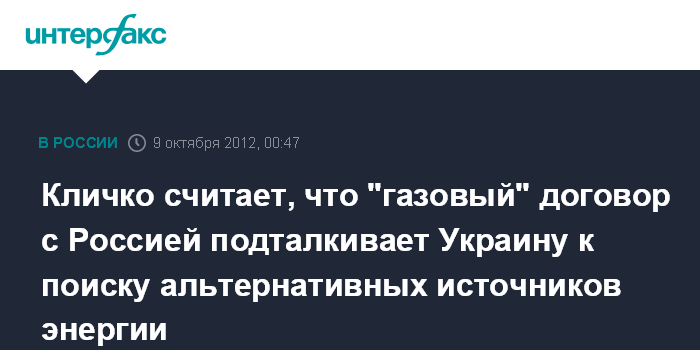 "Был подписан договор (2009 года - ИФ) и это задекларированный документ. Можно говорить о том, выгоден он или не выгоден. Должны об этом говорить эксперты. Но на самом деле, это должно подталкивать нас, Украину, к альтернативным источникам энергии, к энергосберегающим ресурсам", - сказал он в ходе телепрограммы "Один на один" с Савиком Шустером на Первом национальном канале Украины в понедельник вечером.