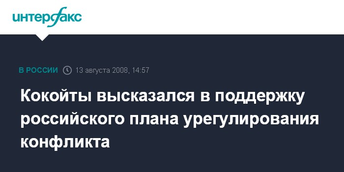 Владикавказ. 13 августа. INTERFAX.RU - Президент Южной Осетии Эдуард Кокойты полностью поддерживает план России по восстановлению мира в зоне грузино-южноосетинского конфликта. "Мы поддерживаем план, который был представлен президентом России Дмитрием Медведевым", - сказал Кокойты на брифинге журналистам после совещания, которое прошло в среду во Владикавказе. Он отметил, что сегодня нужно сделать все, чтобы "был мир на этой земле".