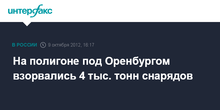 Москва. 9 октября. INTERFAX.RU - На полигоне в Оренбургской области взорвались около четырех тысяч тонн снарядов, сообщает Главное военное следственное управление СК РФ.