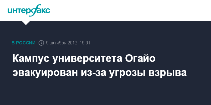 Вашингтон. 9 октября. INTERFAX.RU - Студенческий городок Огайского государственного университета вакуирован во вторник из-за сообщения о заложенной на территории кампуса бомбе, сообщает местный телеканал 10TV.