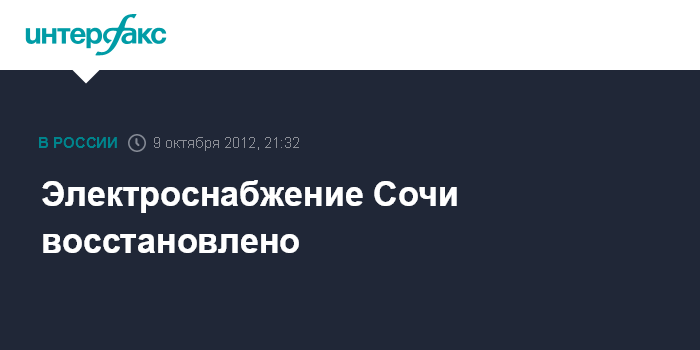 "Электроснабжение в Сочи восстановлено в полном объеме в 21:00 мск", - сказал собеседник агентства.