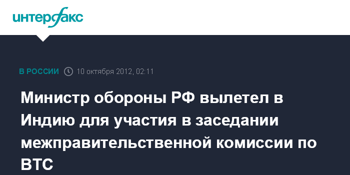 Министр обороны РФ вылетел в Индию для участия в заседании межправительственной комиссии по ВТС