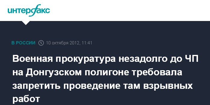 Москва. 10 октября. INTERFAX.RU - Военные прокуроры предупреждали командование Центрального военного округа об угрозе несанкционированных взрывов на Донгузском полигоне в Оренбургской области, где в минувший вторник произошло ЧП, и требовали через суд запретить там взрывные работы, сообщил "Интерфаксу" главный военный прокурор Сергей Фридинский.