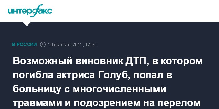 Возможный виновник ДТП, в котором погибла актриса Голуб, попал в больницу с многочисленными травмами и подозрением на перелом