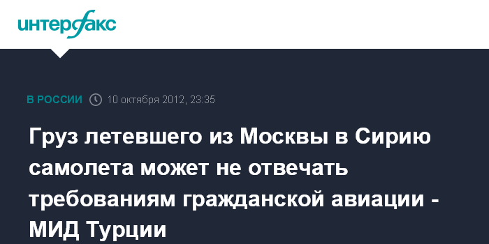 Груз летевшего из Москвы в Сирию самолета может не отвечать требованиям гражданской авиации - МИД Турции