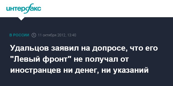 Удальцов заявил на допросе, что его "Левый фронт" не получал от иностранцев ни денег, ни указаний