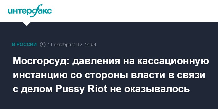 Мосгорсуд: давления на кассационную инстанцию со стороны власти в связи с делом Pussy Riot не оказывалось