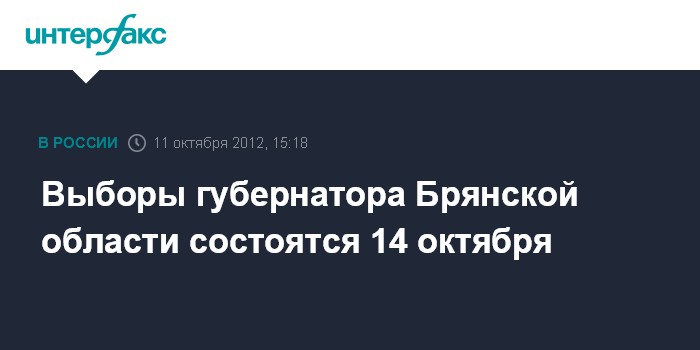 Выборы губернатора Брянской области состоятся 14 октября