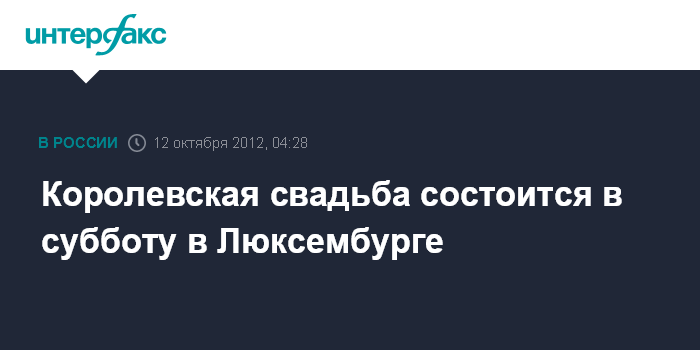 Брюссель. 12 октября. ИНТЕРФАКС - Грандиозная королевская свадьба, гостями которой будут августейшие особы Европы, состоится 20 октября в Люксембурге.