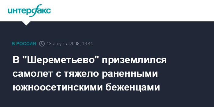 В "Шереметьево" приземлился самолет с тяжело раненными южноосетинскими беженцами