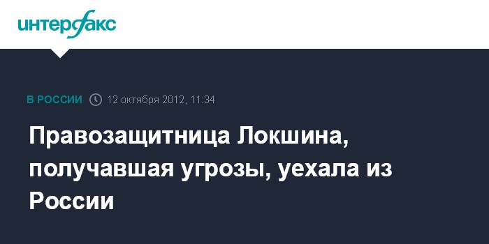 Москва. 12 октября. INTERFAX.RU - Заместитель главы московского бюро Human Rights Watch Татьяна Локшина, которая получала СМС с угрозами, уехала из России.