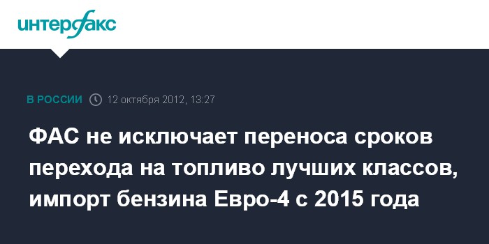 ФАС не исключает переноса сроков перехода на топливо лучших классов, импорт бензина Евро-4 с 2015 года