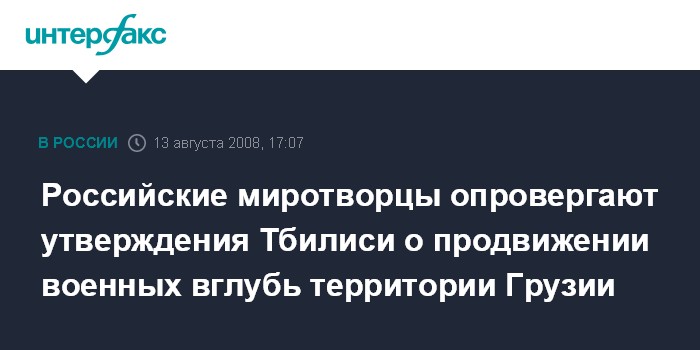 Цхинвали. 13 августа. INTERFAX.RU - В командовании миротворческих сил в Южной Осетии категорически опровергли заявления грузинской стороны о передвижениях миротворцев вглубь территории Грузии.