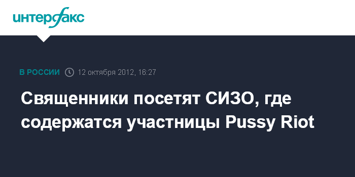 Москва. 12 октября. INTERFAX.RU - В праздник Покрова Пресвятой Богородицы, 14 октября, православные священники посетят СИЗО №6 "Печатники", где содержатся две участницы Pussy Riot - Надежда Толоконникова и Мария Алехина.
