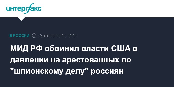 Москва. 12 октября. INTERFAX.RU - В Москве завили, что на россиян, арестованных в США в связи со "шпионским скандалом", оказывается психологическое давление.