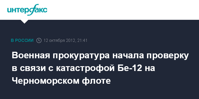 Москва. 12 октября. INTERFAX.RU - Военные прокуроры приступили к проверке в связи с гибелью летчиков в результате авиакатастрофы на Черноморском флоте.