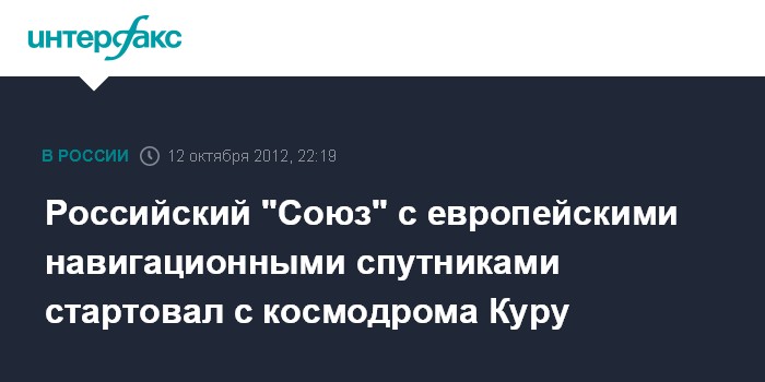 Москва. 12 октября. INTERFAX.RU - Ракета-носитель "Союз-СТ-Б" с разгонным блоком "Фрегат-МТ" и двумя тестовыми комическими аппаратами европейской навигационной спутниковой системы Galileo-IOV стартовала с космодрома Куру в Южной Америке.