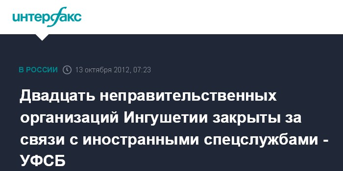 Двадцать неправительственных организаций Ингушетии закрыты за связи с иностранными спецслужбами - УФСБ