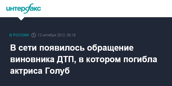 В сети появилось обращение виновника ДТП, в котором погибла актриса Голуб