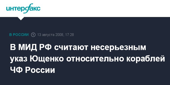 Москва. 13 августа. INTERFAX.RU - В Москве выражают недоумение по поводу указа президента Украины Виктора Ющенко о разрешительном характере передвижения кораблей базирующегося в Севастополе Черноморского флота России.