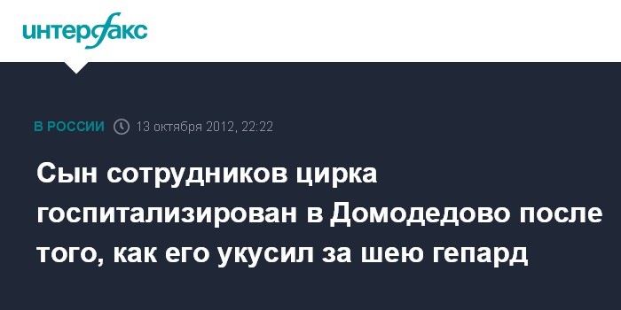 Сын сотрудников цирка госпитализирован в Домодедово после того, как его укусил за шею гепард