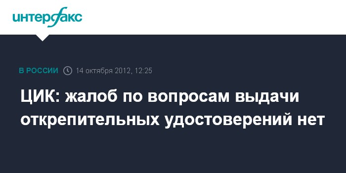 Москва. 14 октября. INTERFAX.RU - Избиратели не жаловались на выдачу открепительных удостоверений, выдаваемых для участия в выборах, которые проходят в воскресенье в ряде регионов РФ, заявили в Центризбиркоме. "Жалоб, либо обращений в суды по вопросам выдачи открепительных удостоверений нет", - сообщил заместитель председателя ЦИК Леонид Ивлев в информационном центре ведомства.