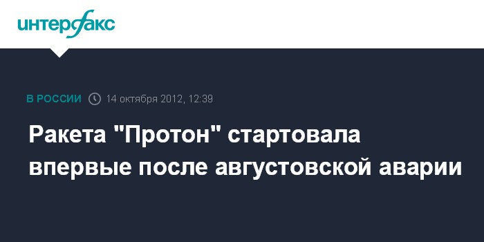 Москва. 14 октября. INTERFAX.RU - Тяжелая ракета-носитель "Протон-М" с разгонным блоком "Бриз-М" и американским телекоммуникационным спутником Intelsat 23 стартовала с космодрома Байконур (Казахстан) в воскресенье. "Отделение головного блока в составе разгонного блока и космического аппарата от третьей ступени произойдет через девять с половиной минут", - сообщили "Интерфаксу-АВН" в Роскосмосе.