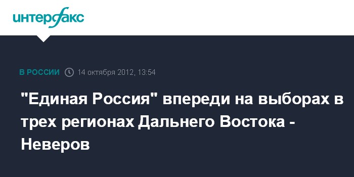 "По данным, поступающим от наблюдателей, на этот час "Единая Россия" лидирует на выборах в трех Дальневосточных регионах, где закрылись избирательные участки", - цитирует С.Неверова пресс-служба "Единая Россия".