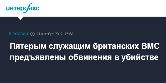 Лондон. 14 октября. INTERFAX.RU - Пятерым служащим Королевской морской пехоты предъявлены обвинения в предумышленном убийстве, сообщает в воскресенье Би-би-си.