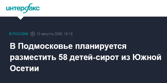 Москва. 13 августа. INTERFAX.RU - Правительство Московской области планирует разместить 58 детей-сирот из Южной Осетии в реабилитационно-оздоровительном центре Мытищинского района в поселке Нагорный, сообщили "Интерфаксу" в среду в министерстве печати и информации подмосковного правительства.